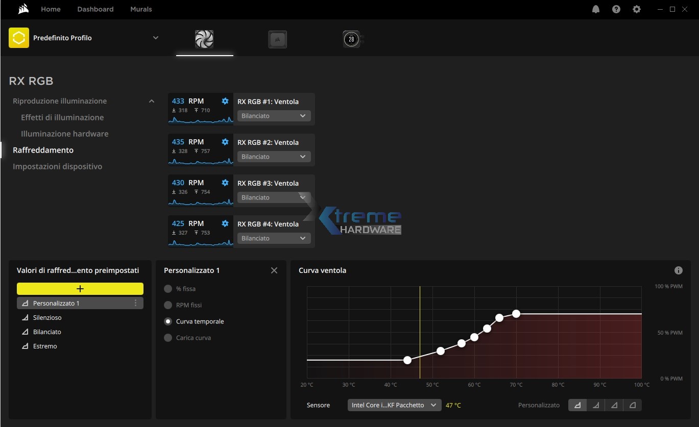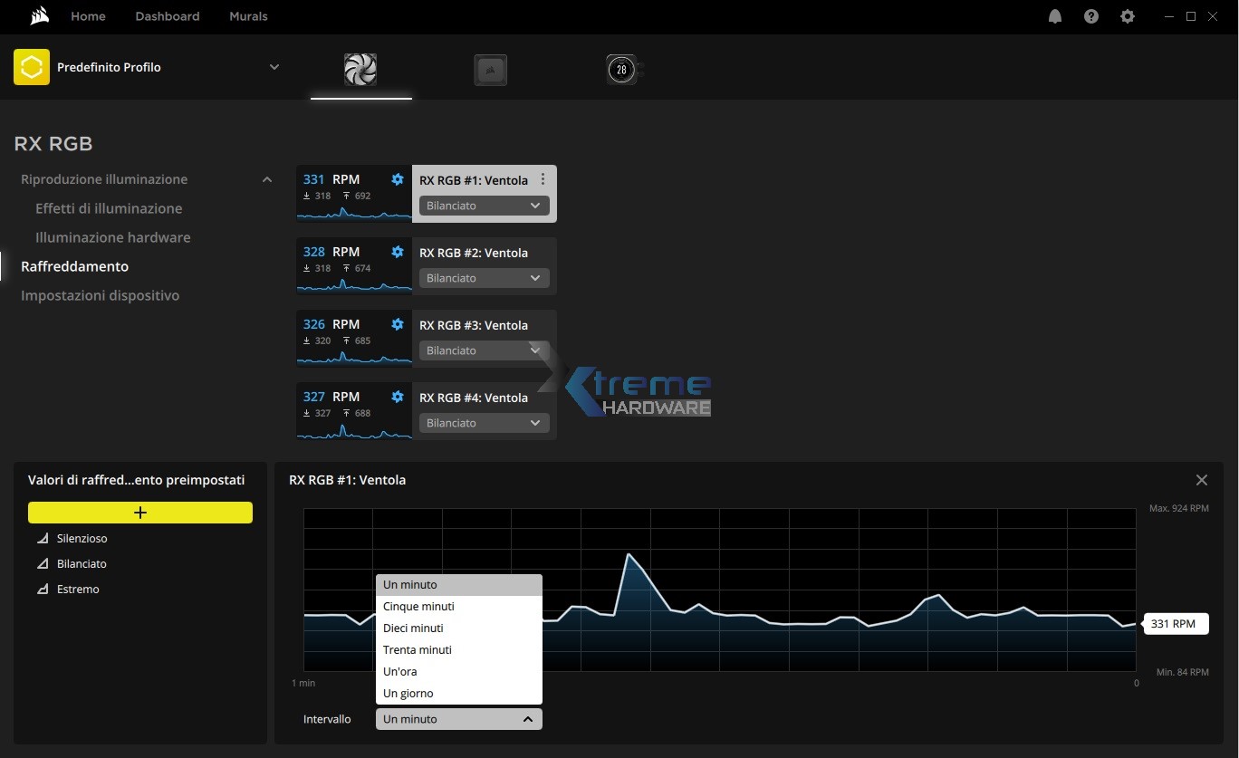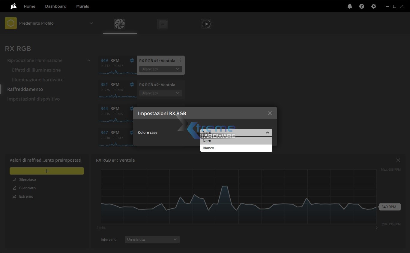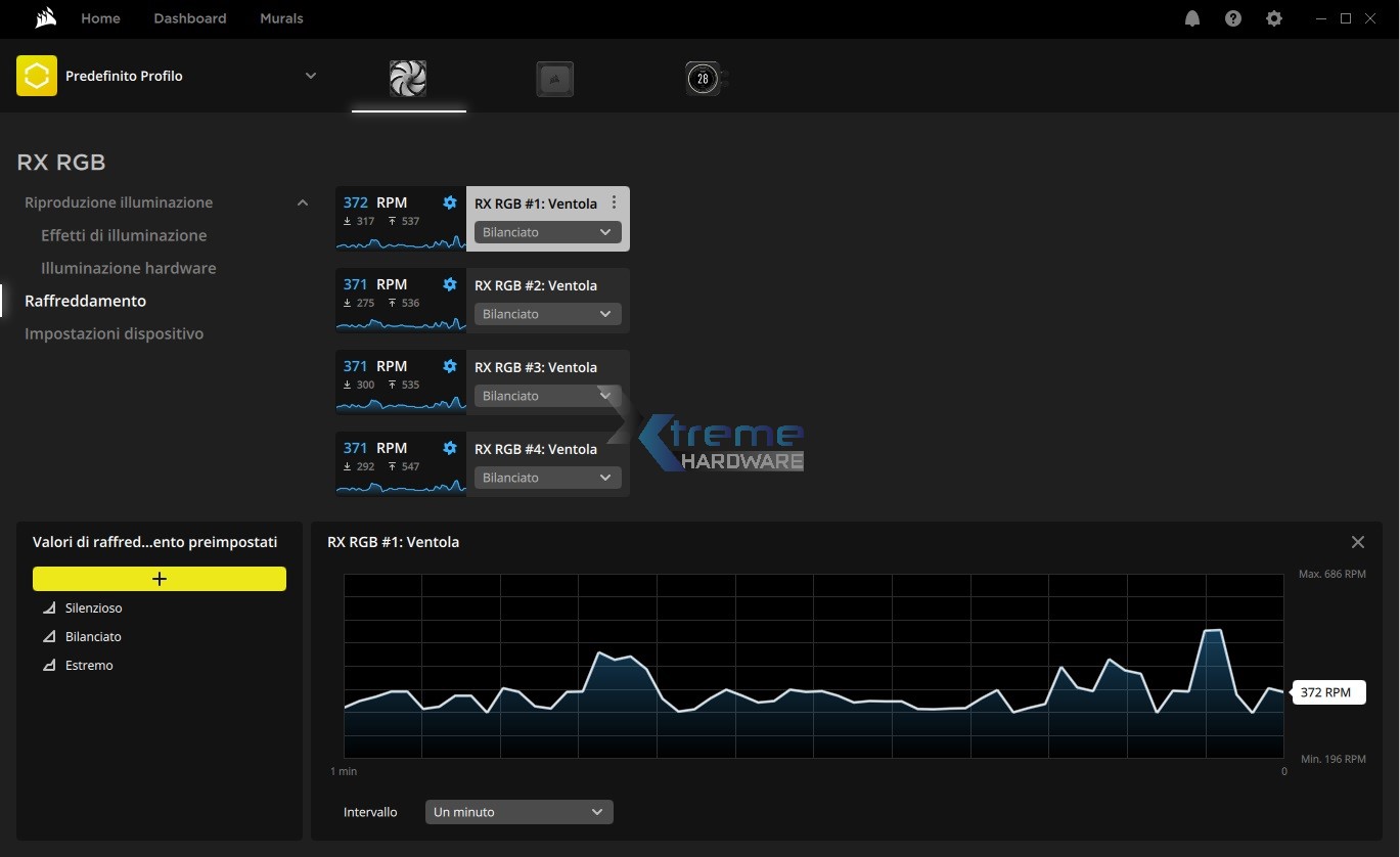 Essendo ventole PWM le RX120 RGB potranno essere regolate a livello di velocità con uno dei tre profili preimpostati o ancora creare un nuovo profilo e curva di rotazione personalizzata in modo da bilanciare per i vostri utilizzi dissipazione e rumorosità.