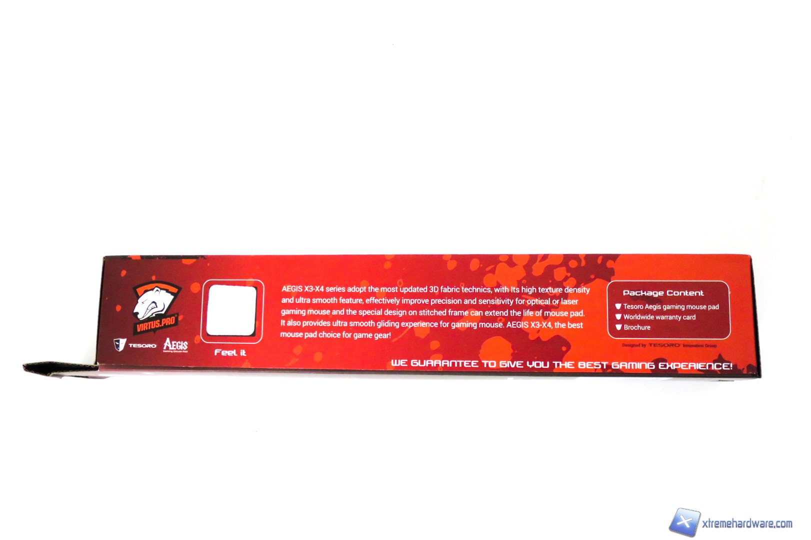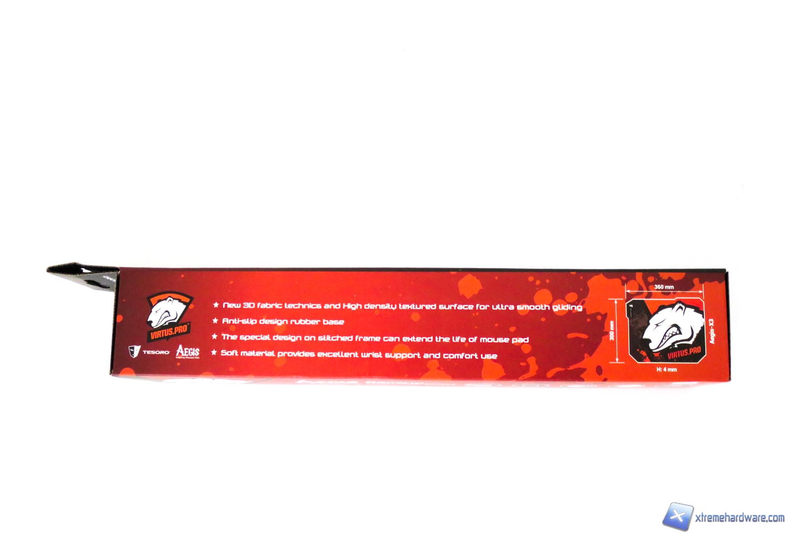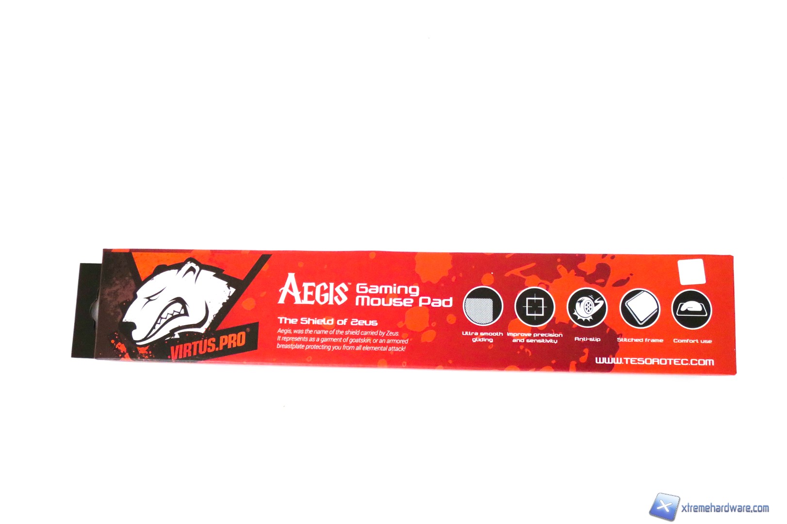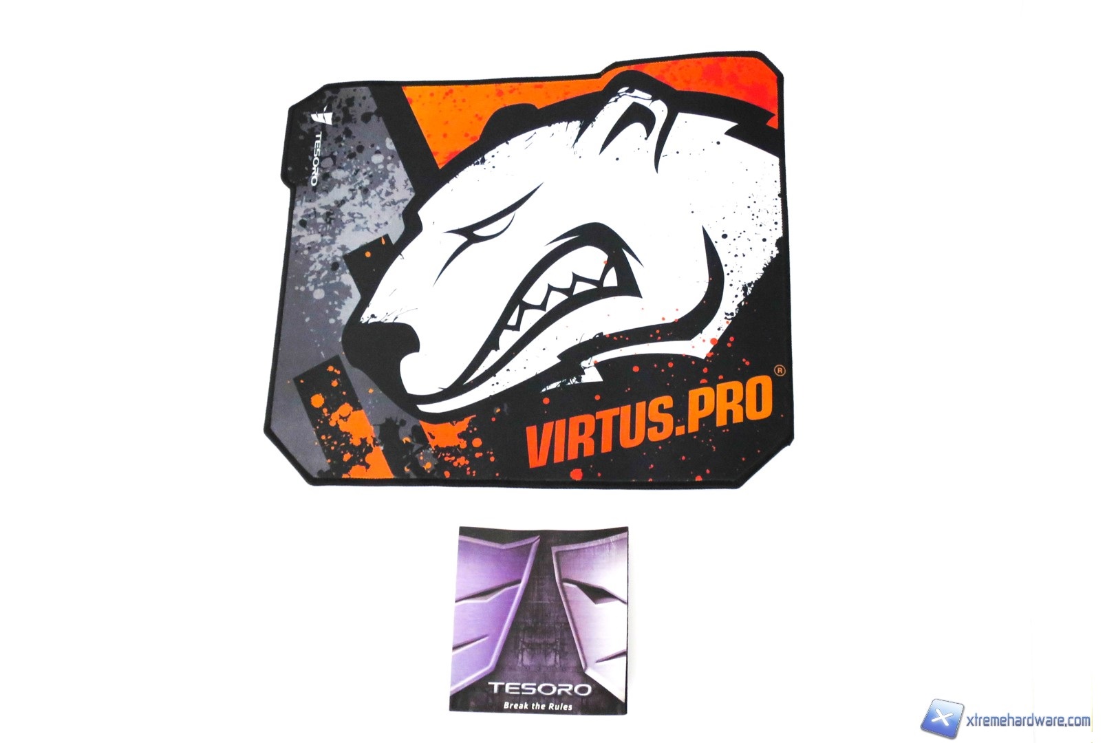 Con il mouseTesoro Shrike V2, la stessa Tesoro ci ha omaggiato di un mousepad della serie nata in collaborazione con il team Virtus.Pro. Ricordiamo che i Virtus.Pro sono un team polacco ed uno dei team più rinomati se parliamo di CS:GO o altri giochi come DOTA II.