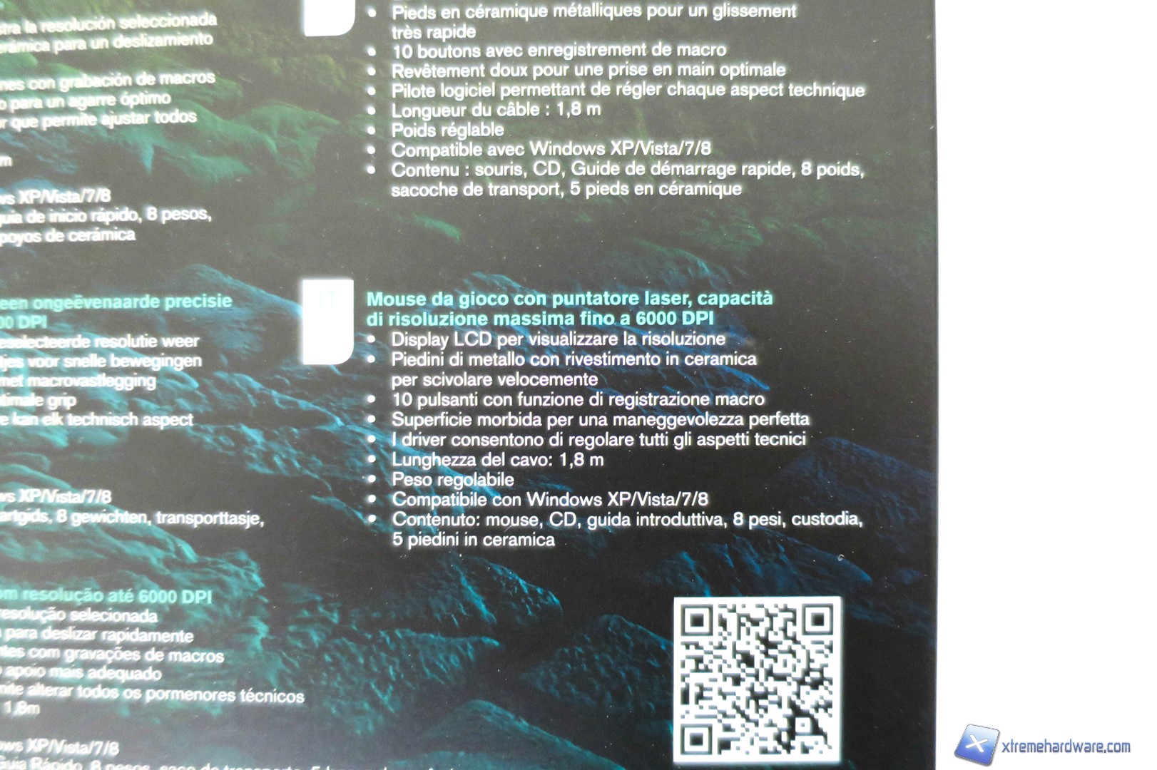 Ai lati non mancano ancora una volta i riferimenti al modello e tipologia di mouse.