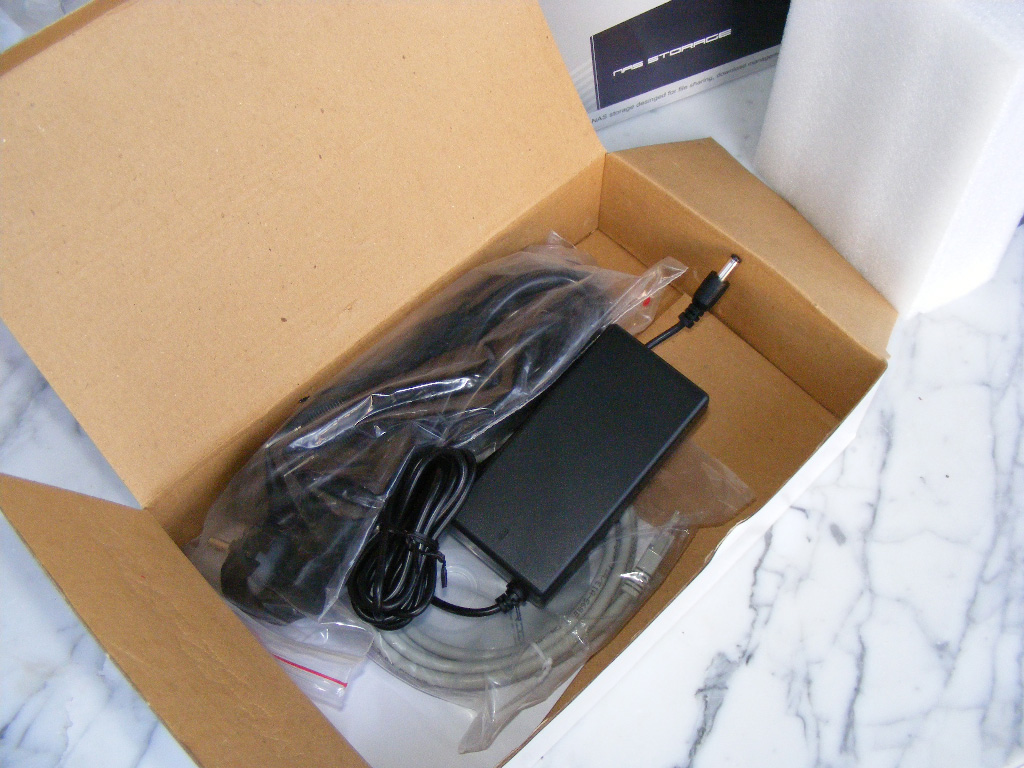 A parte troviamo ben imballato con un robusto supporto di schiuma espansa il NAS dalle dimensioni di 24x10x14cm e caratterizzato da un peso di 2.1Kg a vuoto.