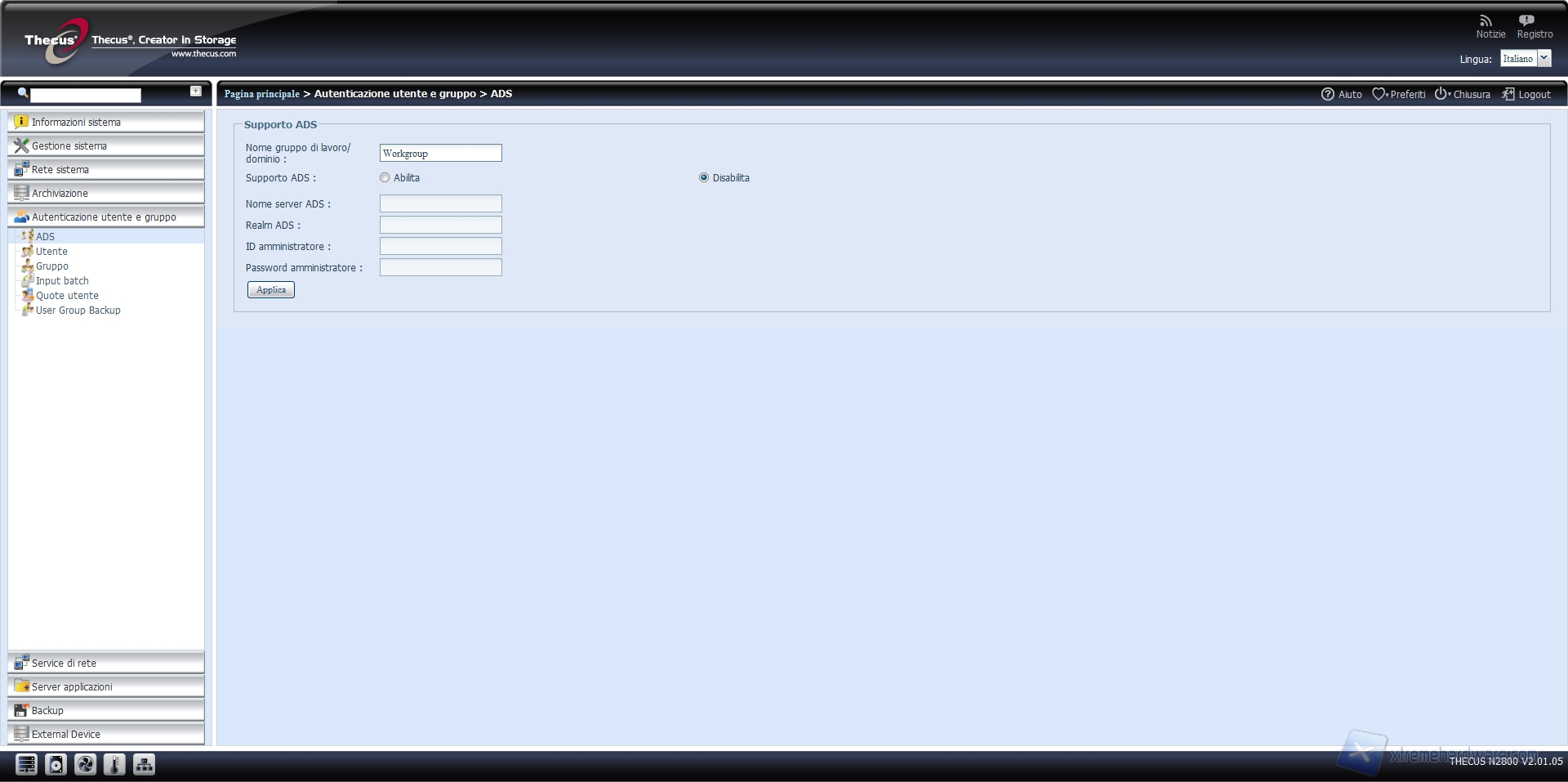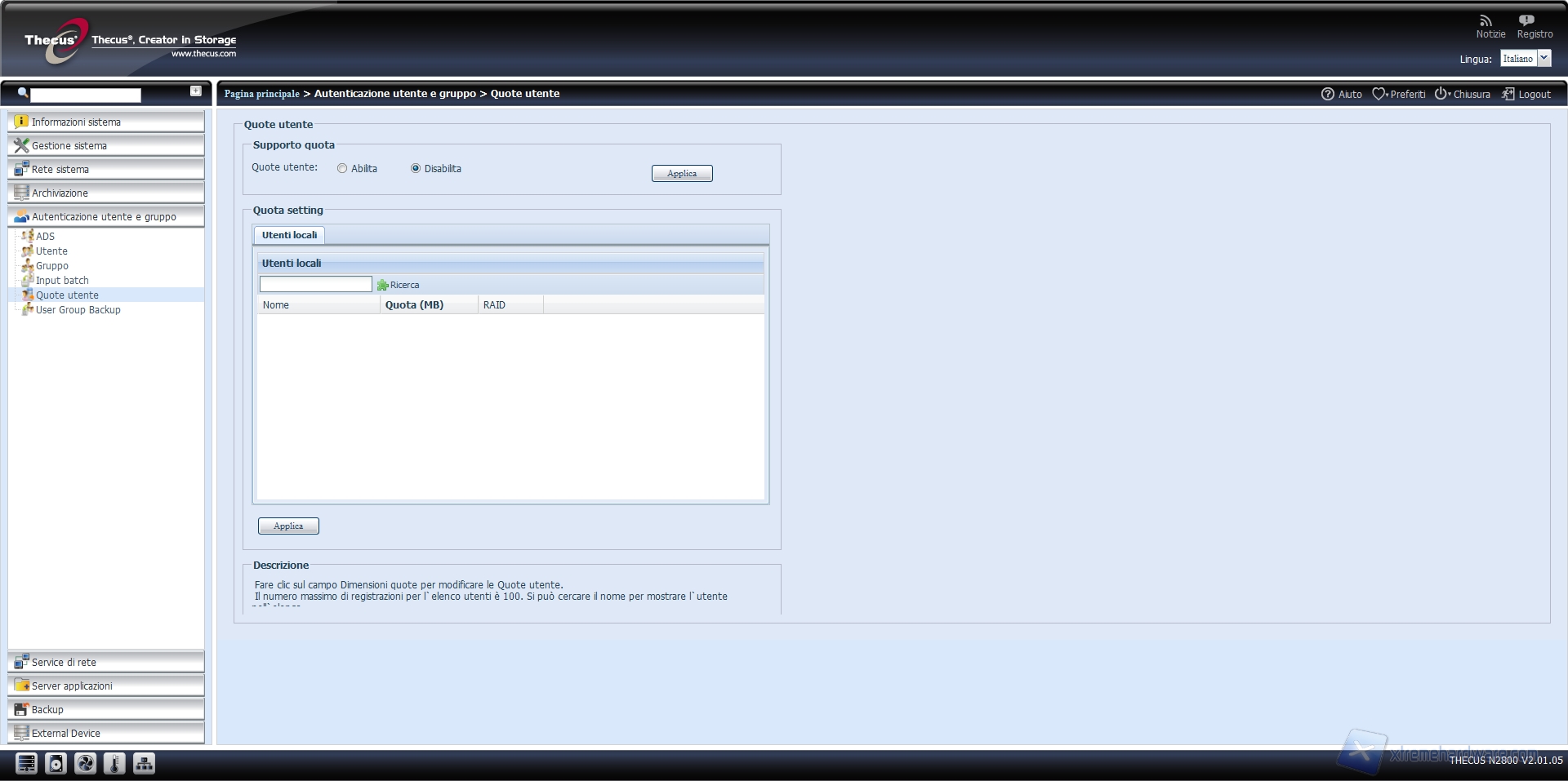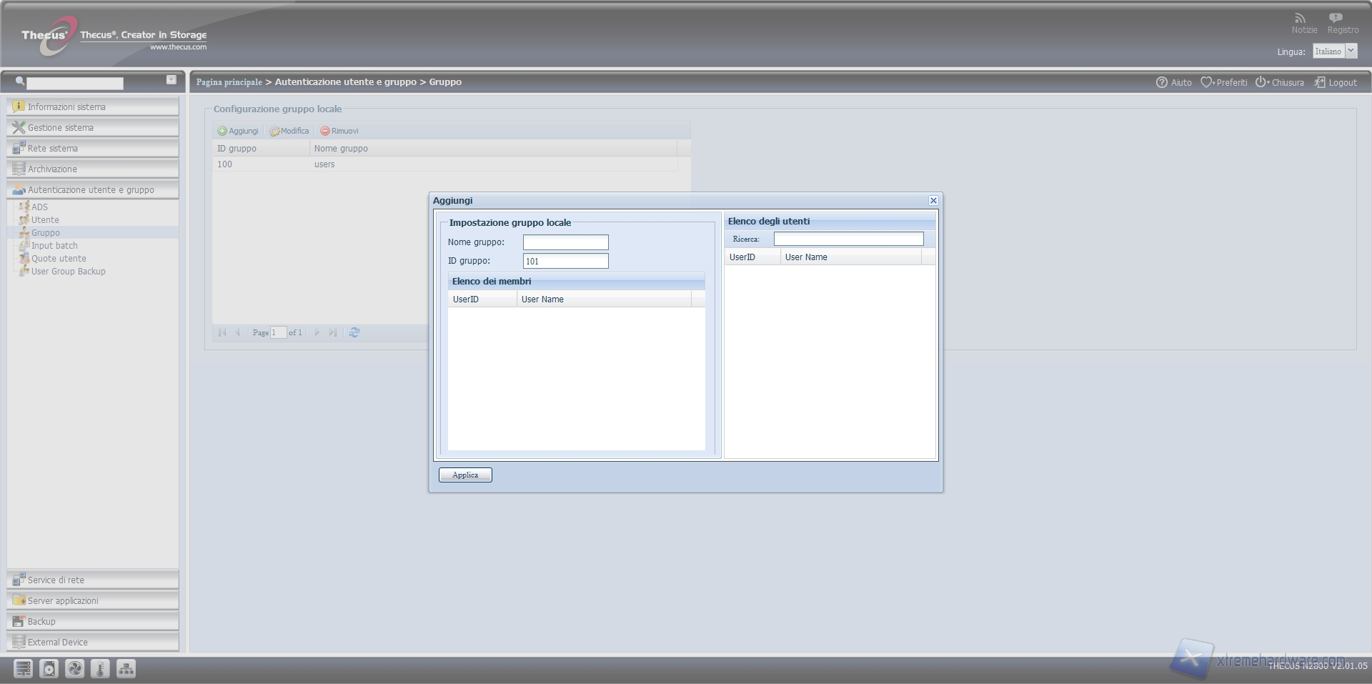NAS Thecus N2800: what else? - Menu: autenticazione utente e gruppo