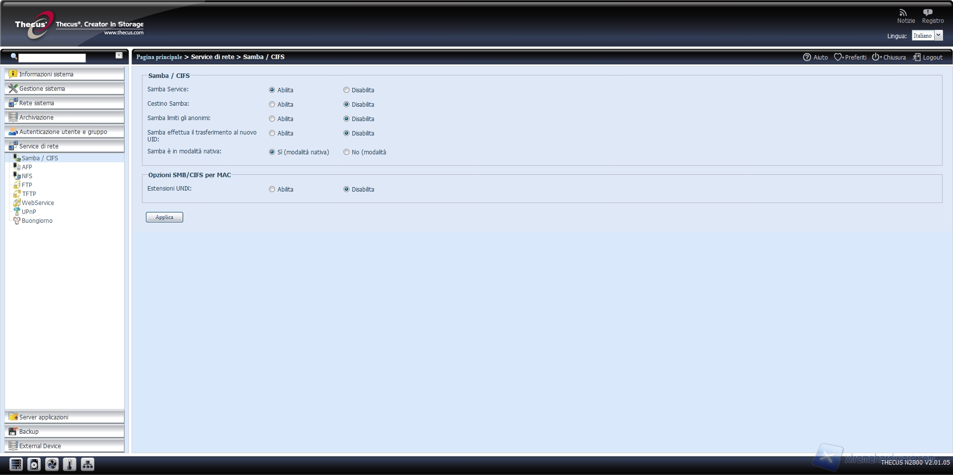 Altro servizio che il Thecus N2800 mette a disposizione è il WebService, che permette la navigazione all’interno del NAS tramite protocollo http o il più sicuro HTTPS.